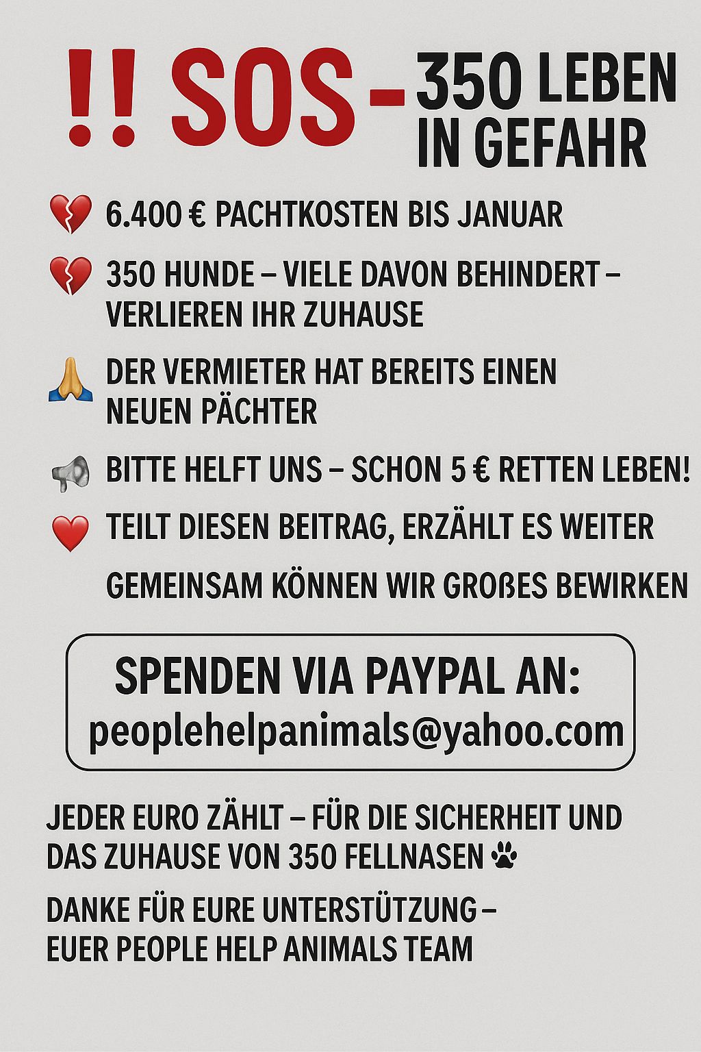 Nur 5€ die mit helfen für 2 Jahre das Zuhause für 350 Fellnasen zu sichern!